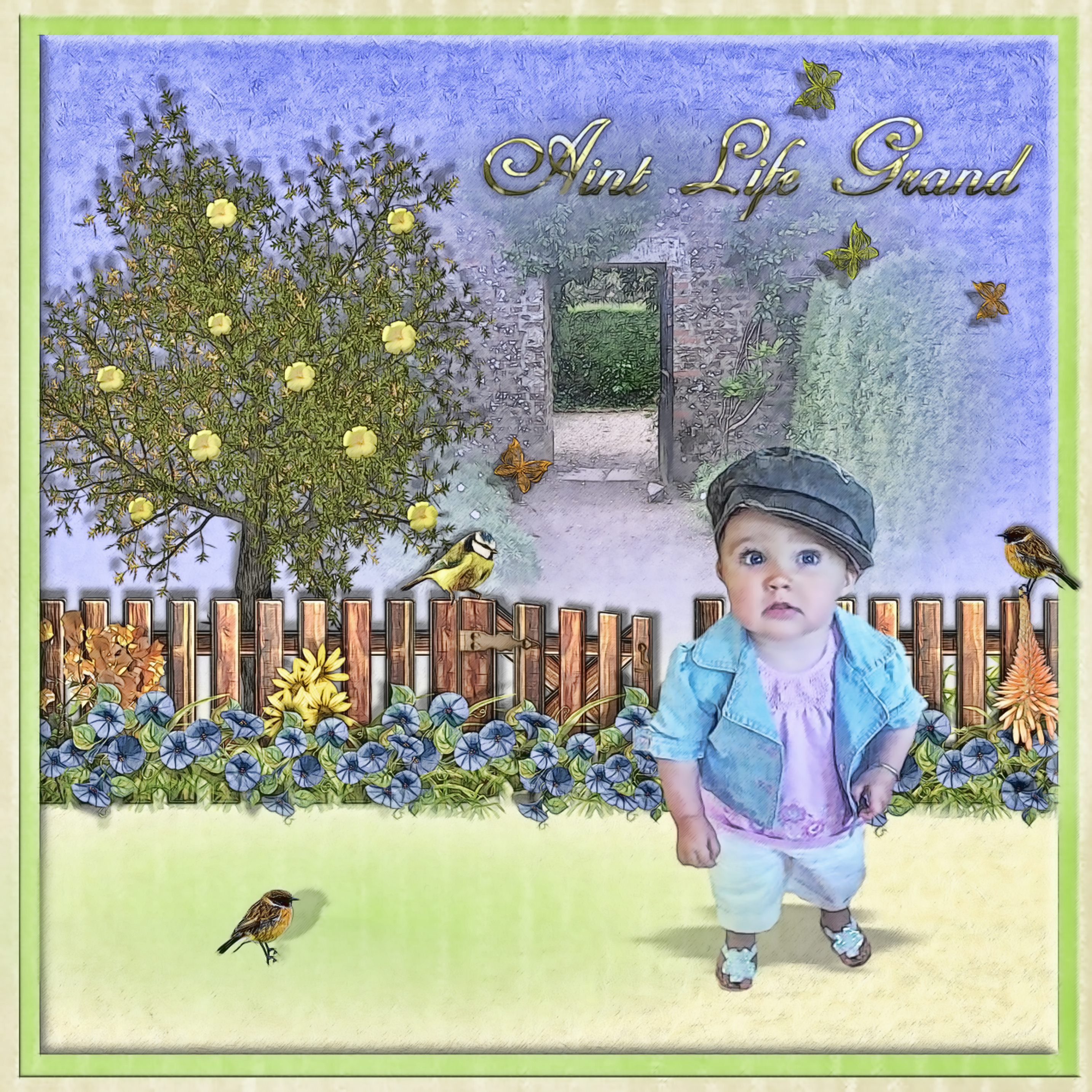 Aint Life grand by Linda Lou, free to download on her blog,the garden image blended into the BG is my own xxx