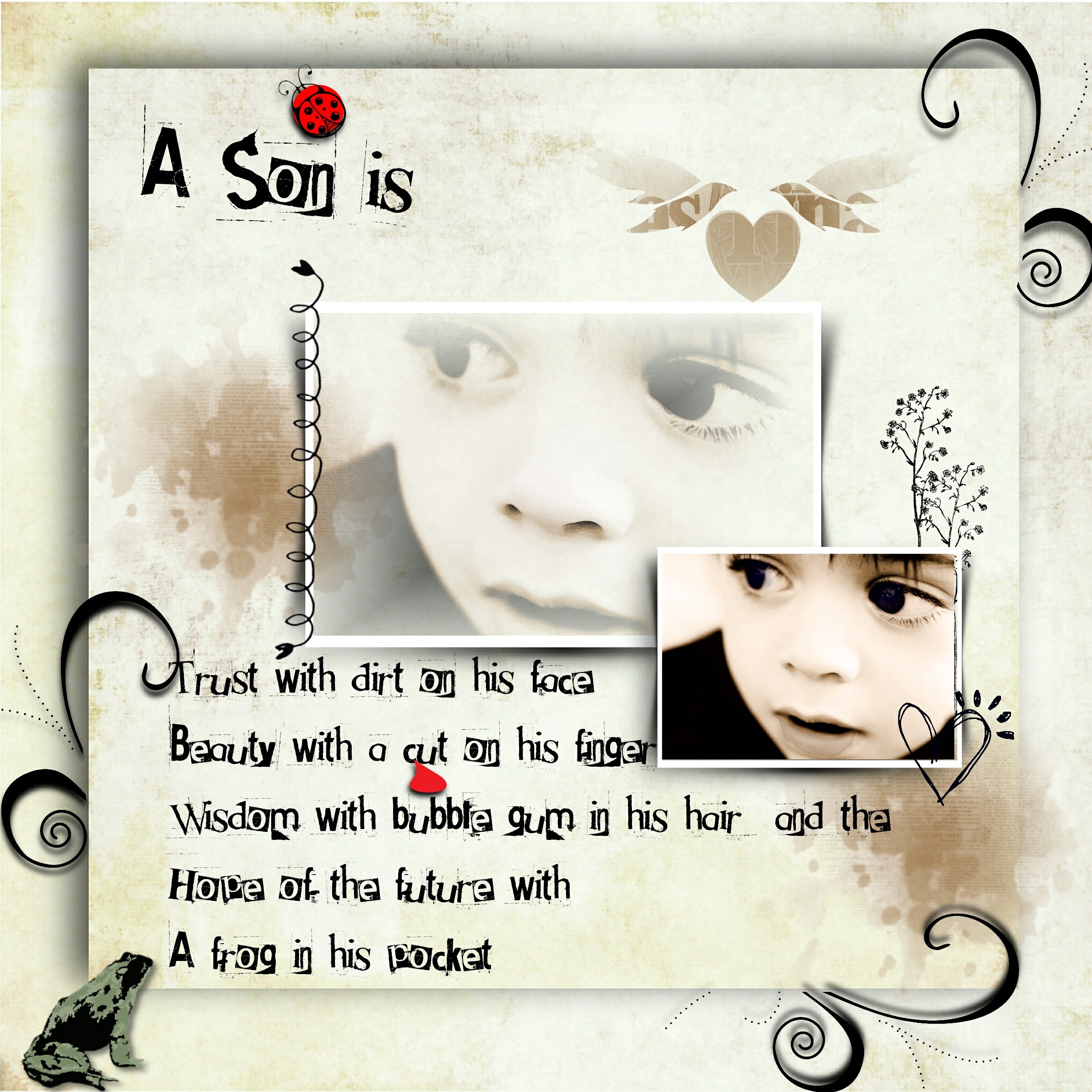 What a wonderful page for your son. Love the words and a super photo.