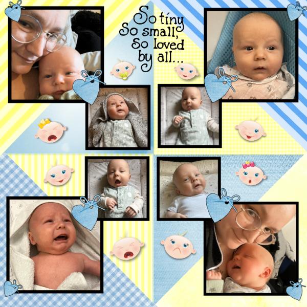 Another page for Joce's Numerical challenge. Photos of our new Gt.Grandson Oliver. 8 photos, 8 papers, 8 frames, 8 words, 8 babies and 8 hearts.