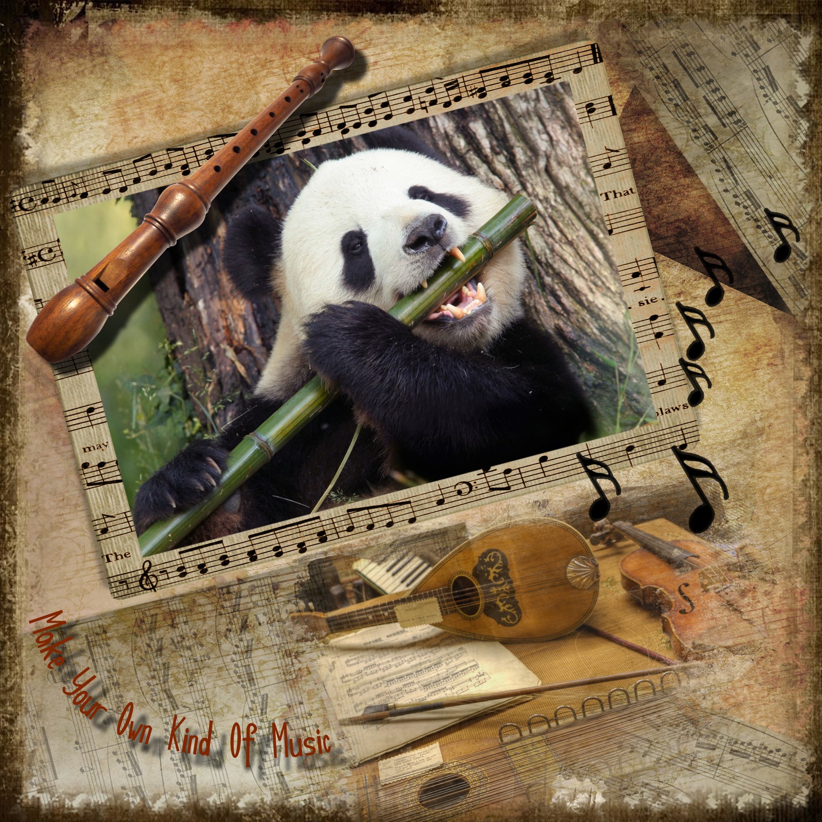 There he was chewing away on his bamboo shoot and you've got him making music. Very clever Beryl - thank you for making this super page for my challenge.