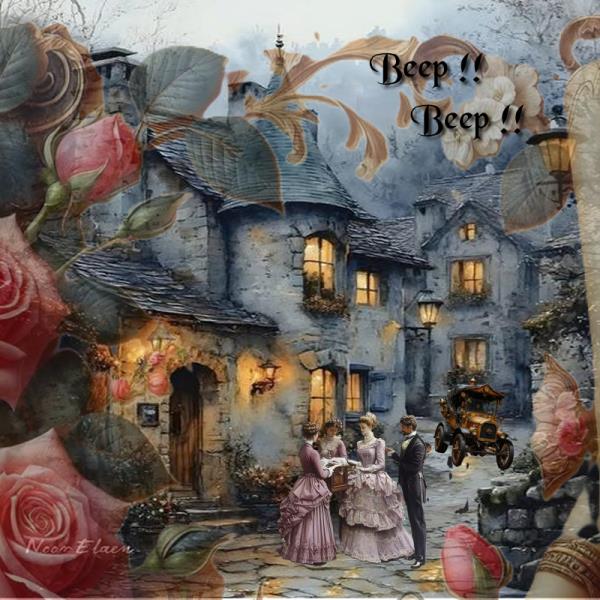 Created by Scrapbook Max 2.0. Background, flower frame, horseless carriage, and young people, were taken from Pinterest.