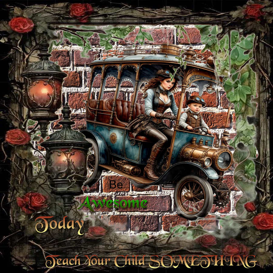 Created with Scrapbook Max 2.0. Background, frames, and car with mother and child, were found on Pinterest.