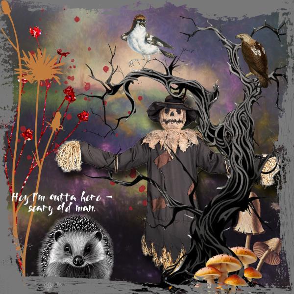 Scarecrow, hedgehog, toadstools from the net. BG by aad Birds - Karen Schulz. Tree - cwd PSE2023