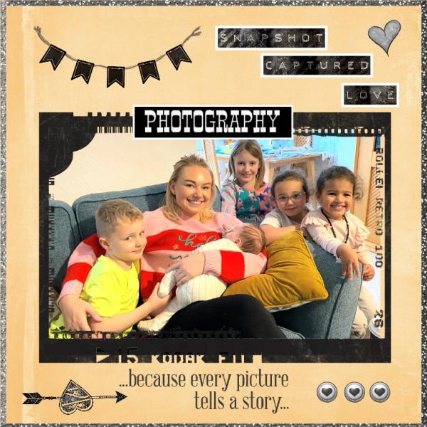 Another page for the Word tags challenge. My Granddaughter Laura with 5 of our Gt.Grandchildren...Unfortunately Olivre lives 70 miles away.