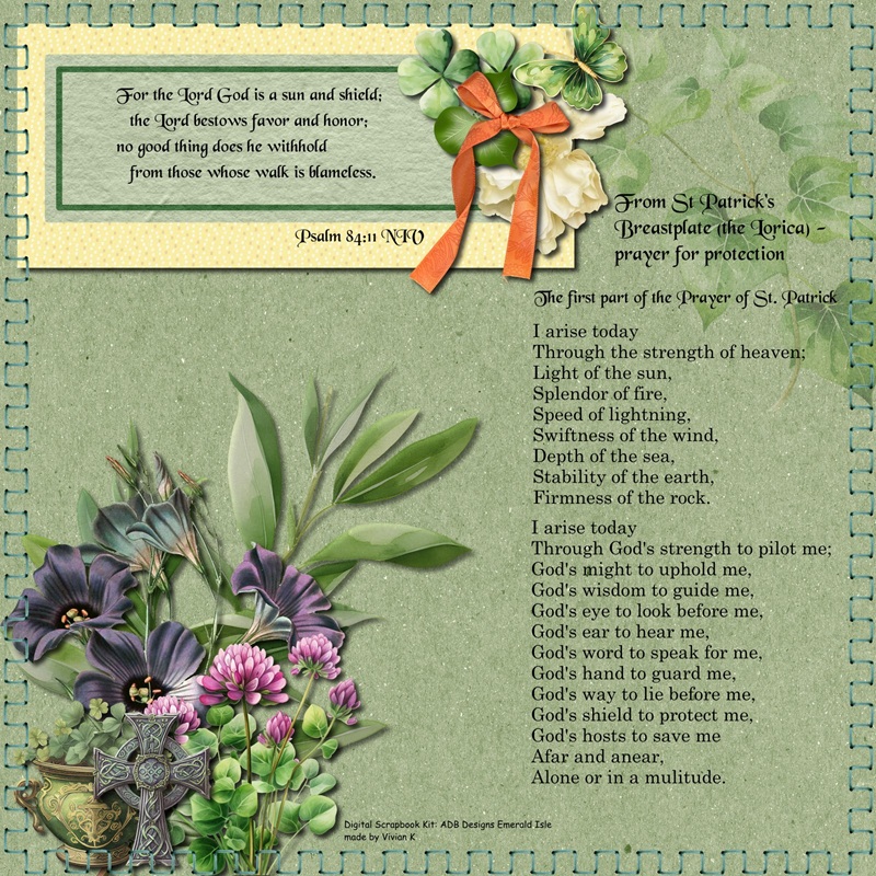 After watching a movie about St. Patrick last night, I made this page with part of his Breastplate prayer. Blessings to all.