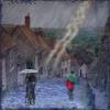 My photo - we visited this street on a holiday - it is very steep! It was a brilliant sunny day when I took it. I've added the people, the rain and the lightning. Edging by Karen Schulz. PSE2026