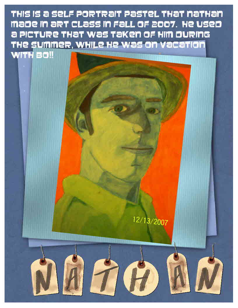 This is my son Nathan's self portrait that he did in art class this year, his senior year in high school!