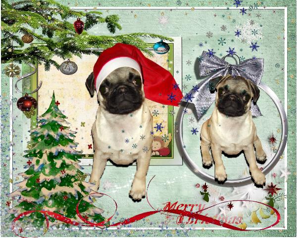 This scrapbook has a story ; my friend had a very bad 2007 and 2008 years ; she bought Vanille the little pug ; the puppy is so adorable that I decided to scrap her and let her say Merry Christmas to you all ;o))))