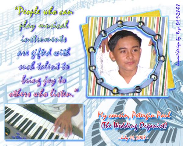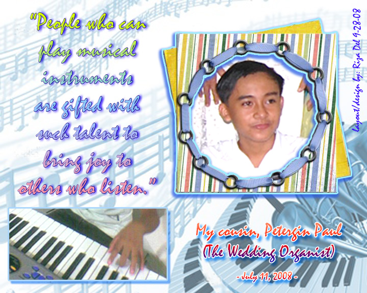 My handsome cousin, Petergin who can play the organ so well with his skillful hands & own style...