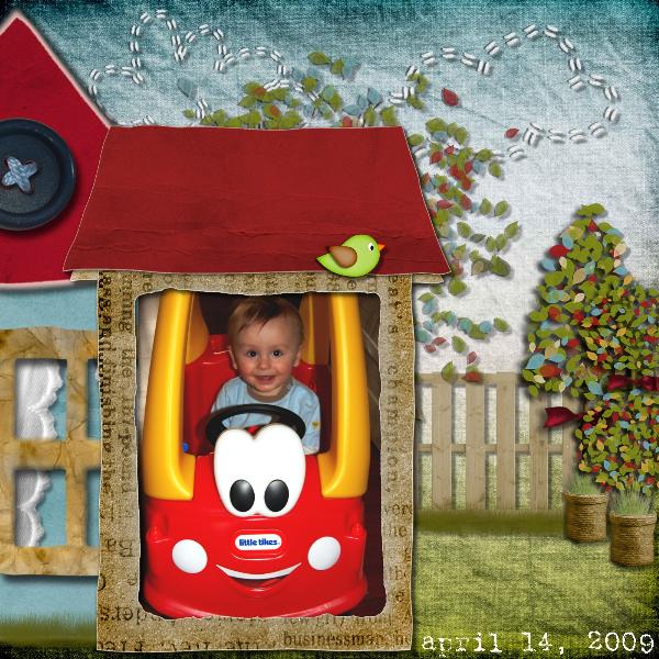 Matt was THRILLED yesterday to get his first car :) I love it because it has a removable floor board and a lock on the car door, so he can't fall underneath, or fall out the side while we push him around LOL. Been there, done that, with Kev and Dare oopsy lol. So here he is, about to pull out of the garage and go for a spin :)