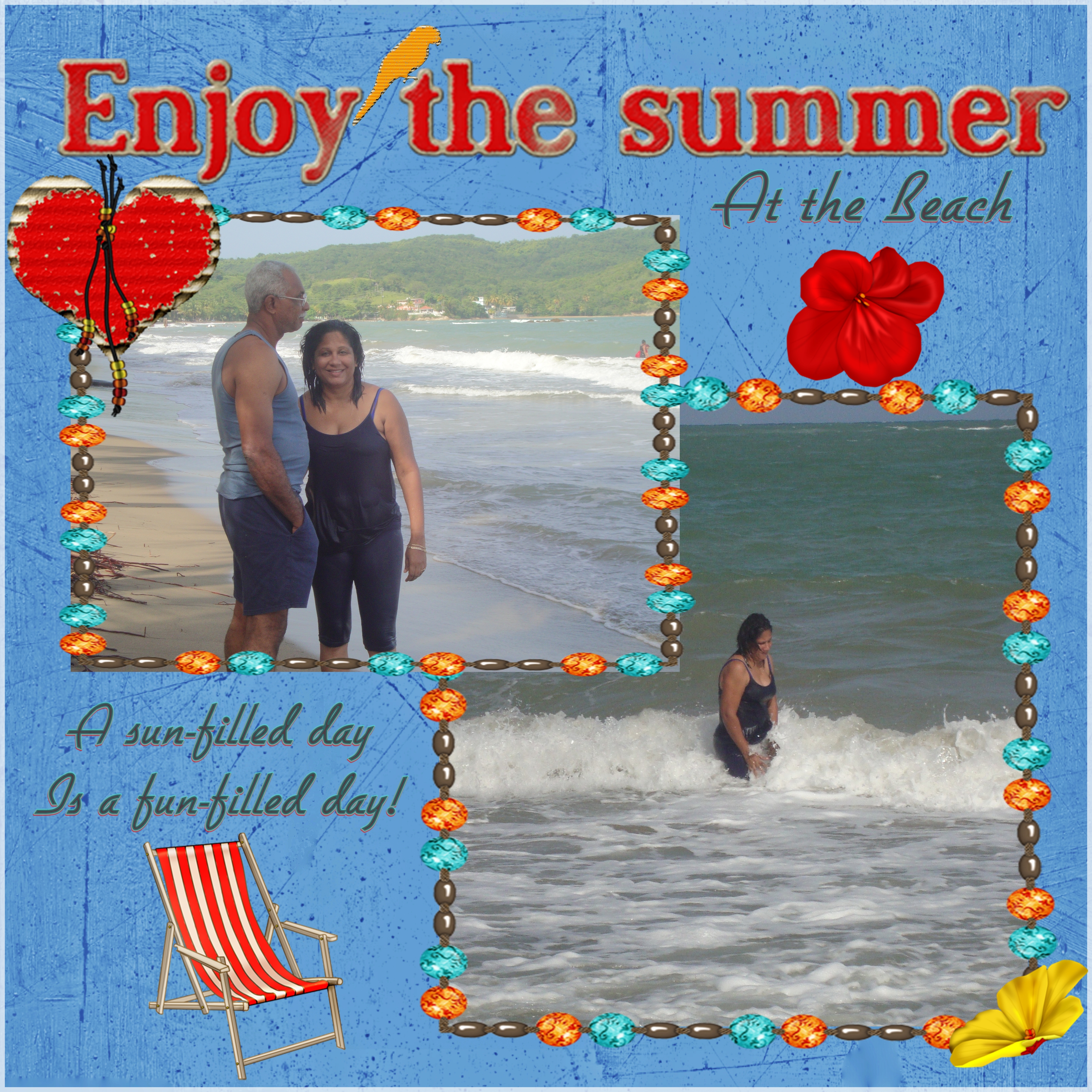 I made it on photoscape with Caribbean Summer scrapbooks elements