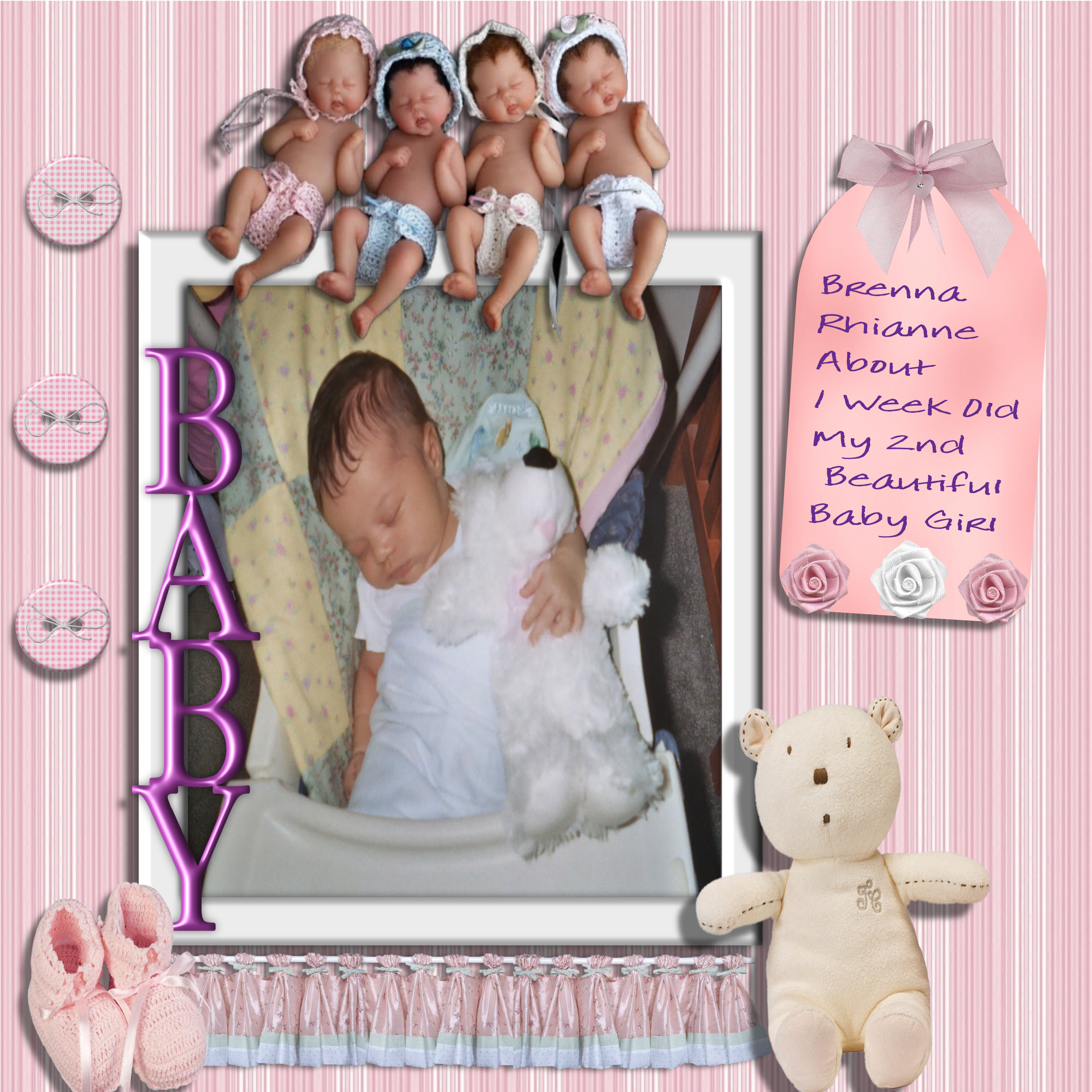 She is precious!! And what a beautiful page! The little babies across the top of your frame look so cute!