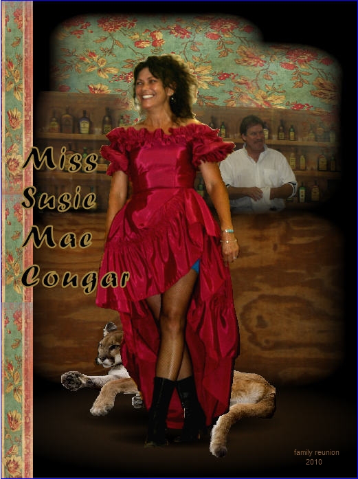 This family reunion scrapbook page is my sister. She did give me permission to call her cougar on stage. She's a few years older than her boyfriend.