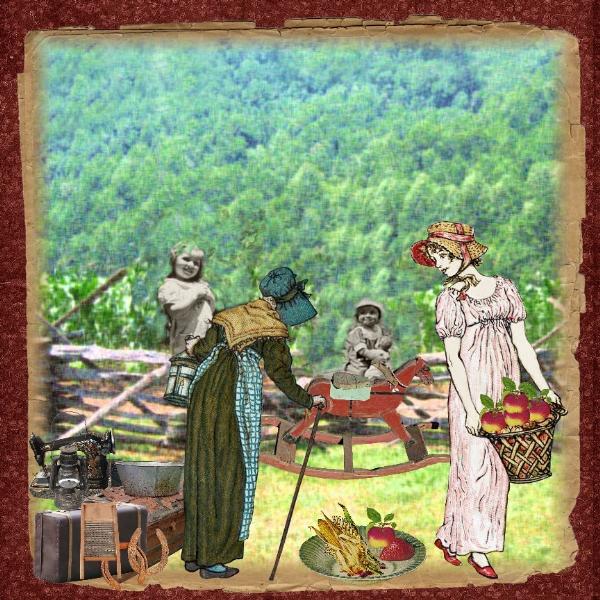 SBF, Ditz Bitz Kit Granny,just softened edge of page, Two little girls extracted from a pic from net. MDI.