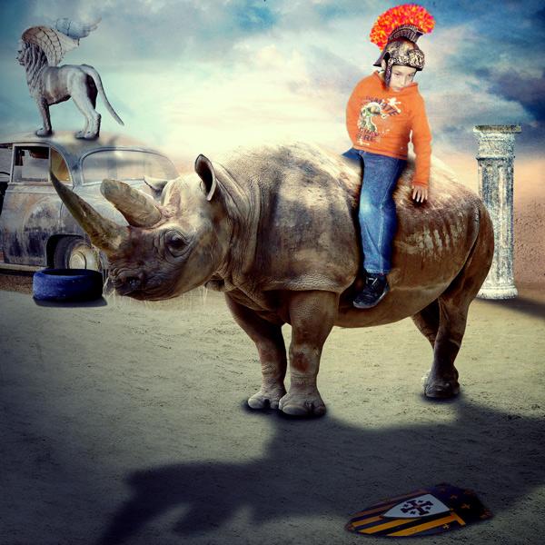 So amazing and artistic! Riding a rhino? One tough little guy!