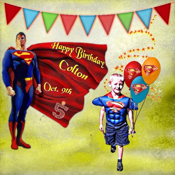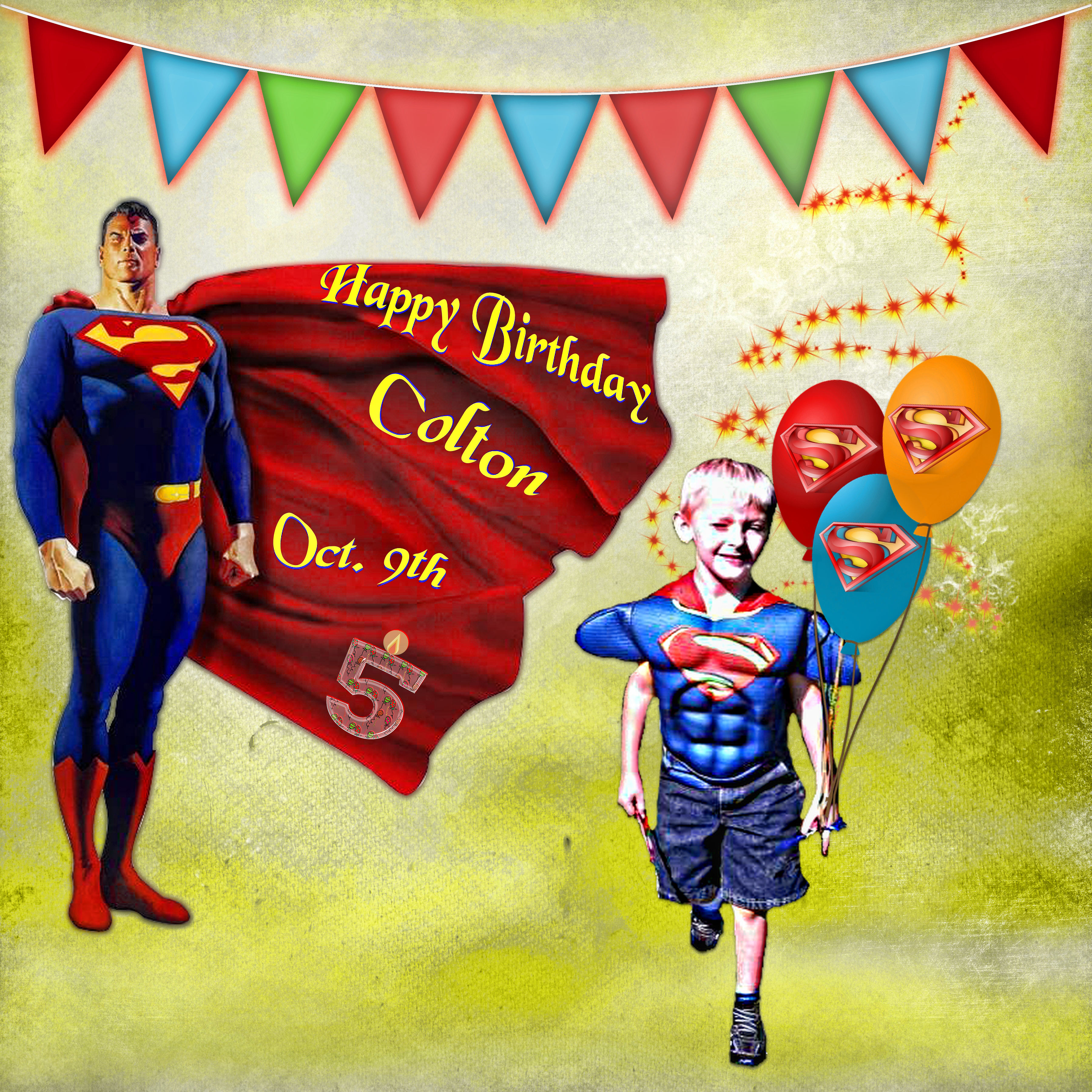 Scrapbook Max2 Photo: By: Jeri-Ann, Verizon Cell Photoshop7: Topaz Adjust5 and Extraction Kit: Je re're, By: ML Designs, Digiscrapbookingboutique, Newsletter Freebie Kit: Birthday Wishes, Craft Crave, Freebie Elements: Superman and Shield, Bing