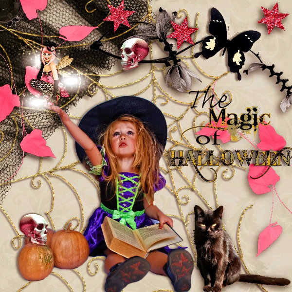 Great Favourite, this is just darling Michou! An adorable choice of image, more the Halloween Princess than little witch, a cute and beautiful showcase for Heather's wonderful kit cc