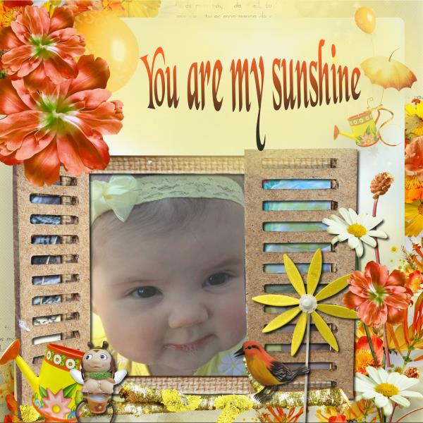 Photo is mine. Kits used are from my fav...Cajoline....Sunshine stacked papers and sunshine elements all used from her kit. Also frame came from another kit from Cajoline...Beautiful love! I used Scrapbook Max2 for scrapping page as well as all effects!