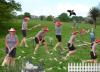 This is my daughter (Sharon) X6 playing family cricket Christmas 2013 watched by her children who were much older at the actual game.