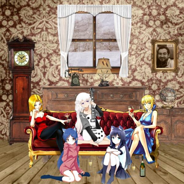 Adapted from a birthday card I made for my nephew who loves Anime. I was probably inspired to combine Anime and Vintage by the two ladies on either end of the vintage sofa. Thanks so much for looking and for your comments and support.
