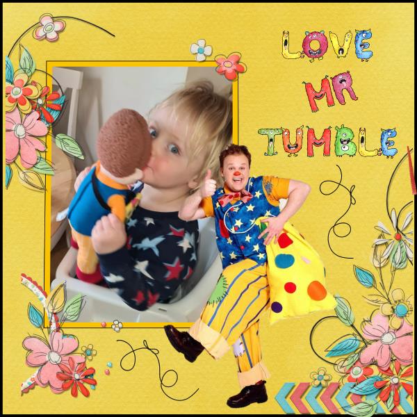 This is such a fun, colorful and greatly designed page with a photo of Arthur and having fun with Mr. Tumble!!!