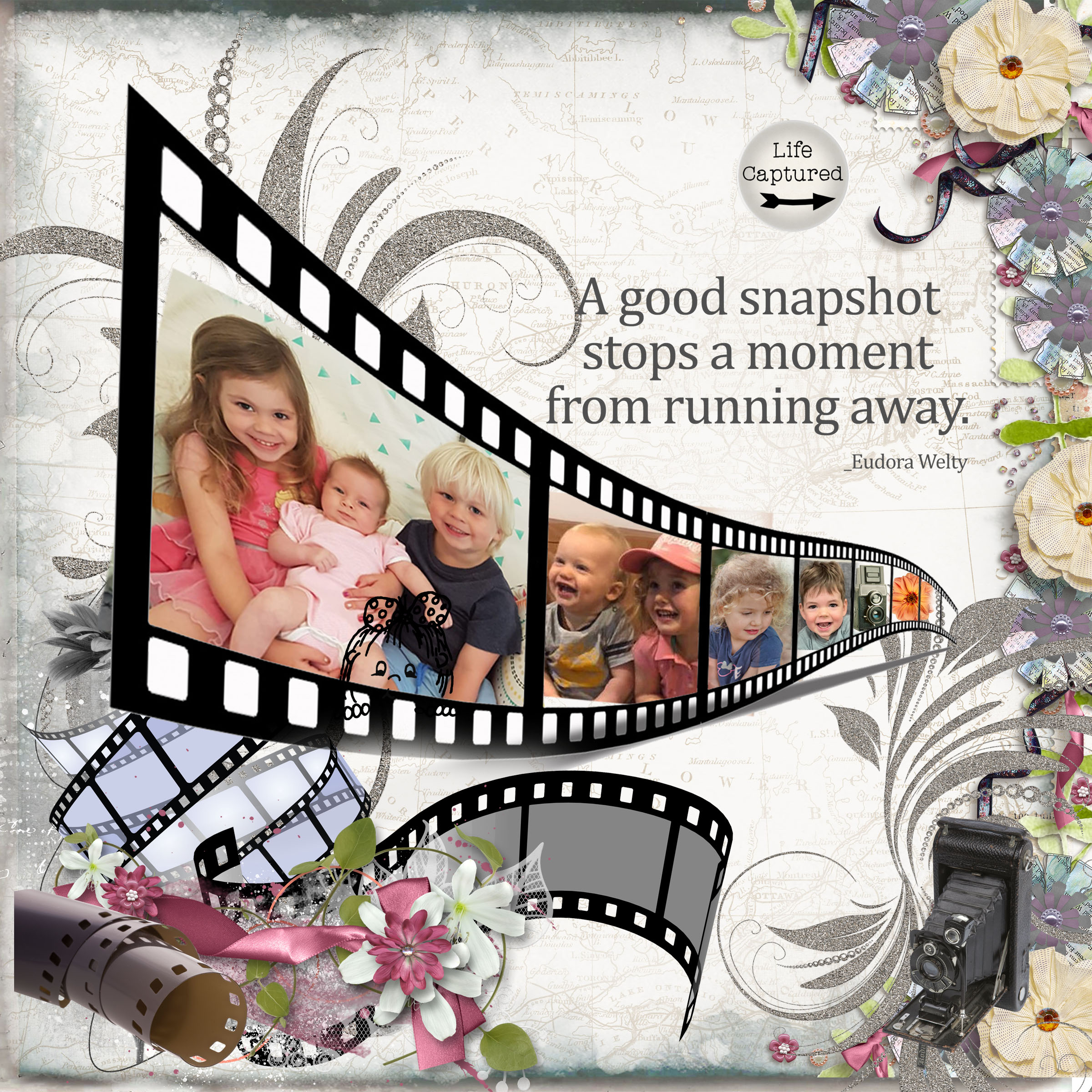 My photos of the children. Film strips from net. It's a Snap by Karen Schulz. PSE2023