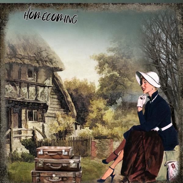 Love the beautiful old homestead and your retro lady sitting and enjoying the pleasure of coming home.