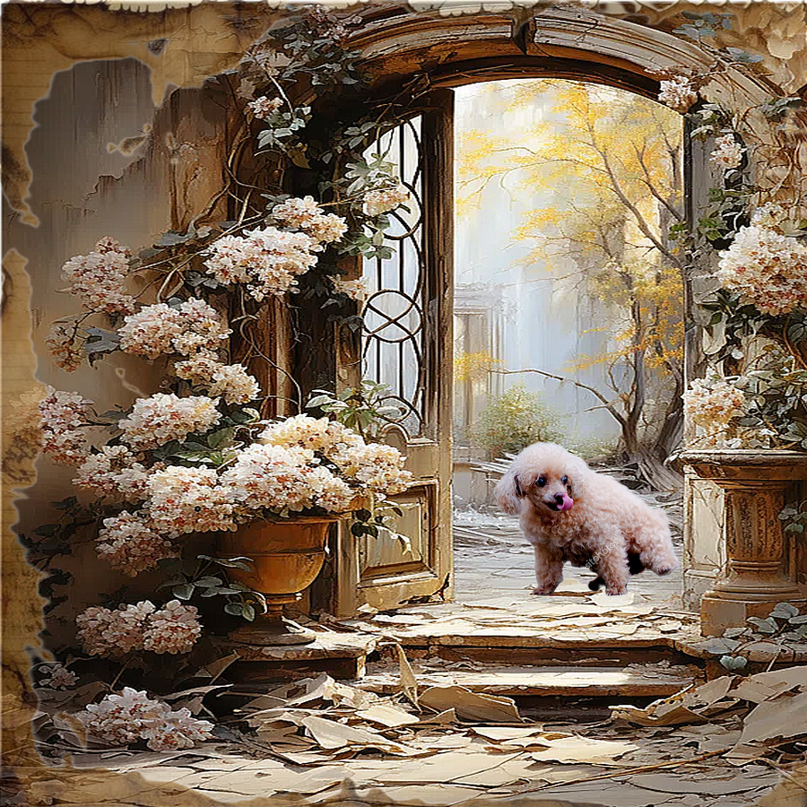 Created with Scrapbook Max 2.0. Background, dog, and frame found on Pinterest.