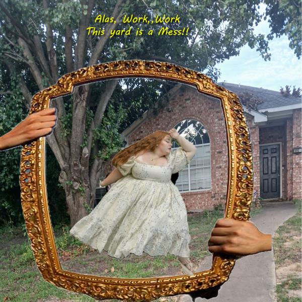 Created with Scrapbook Max 2.0. Background from my camera, house in my neighborhood next block. Oversized lady and frame found on Pinterest.