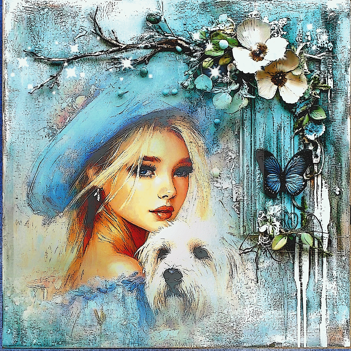 Kit is Something Blue by Mel's designs, image of girl/dog is from the net. cheers all.