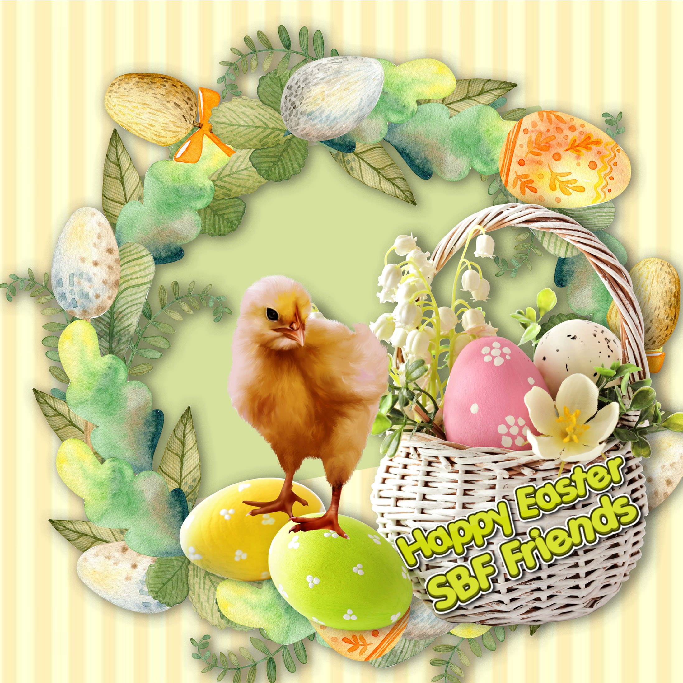 Love your egg wreath June and thet cute chicken. Happy Easter to you too and thank you for creating this beautiful page for the challenge.