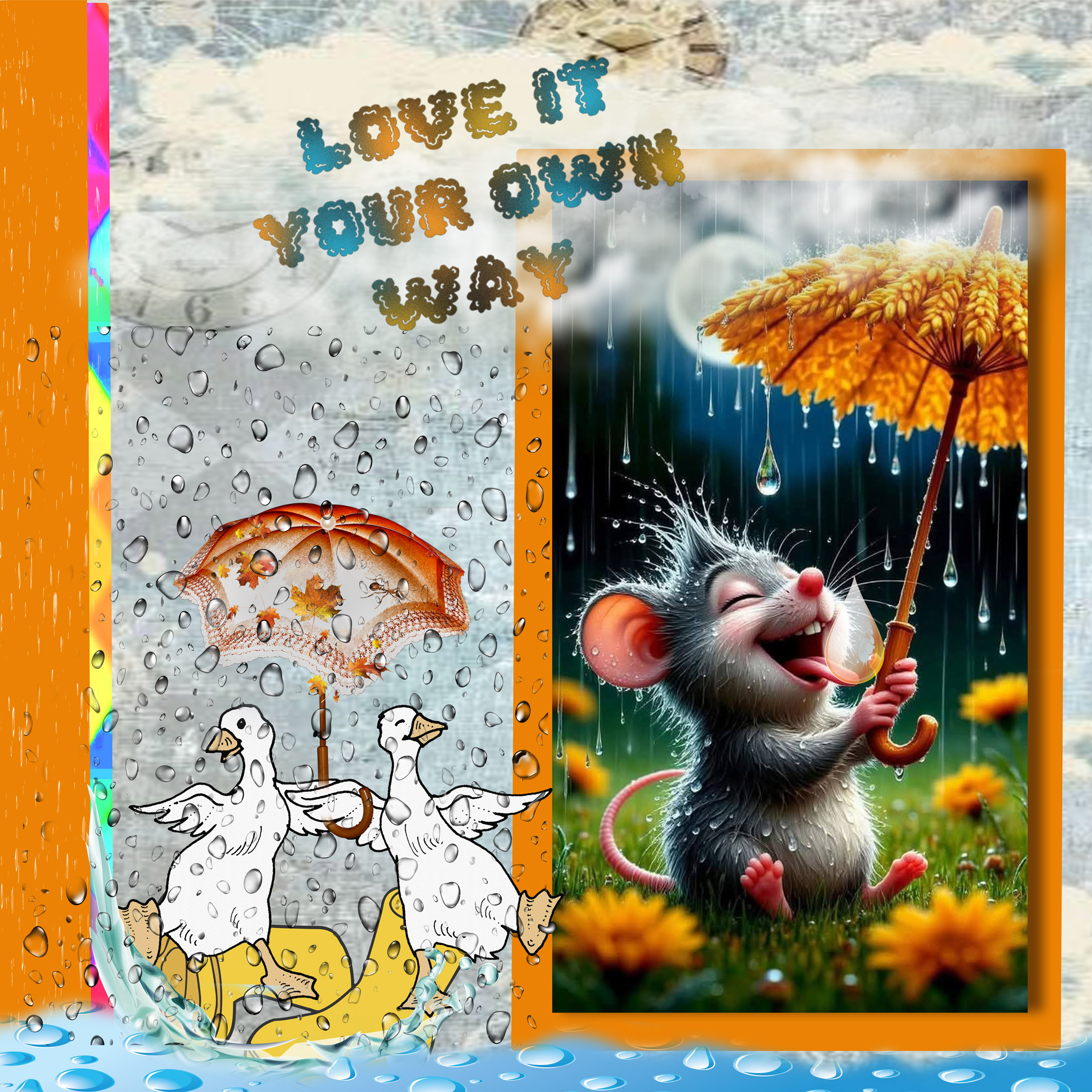 Some very happy creatures enjoying the rain. Fantastic page June and thank you for making it for my challenge.