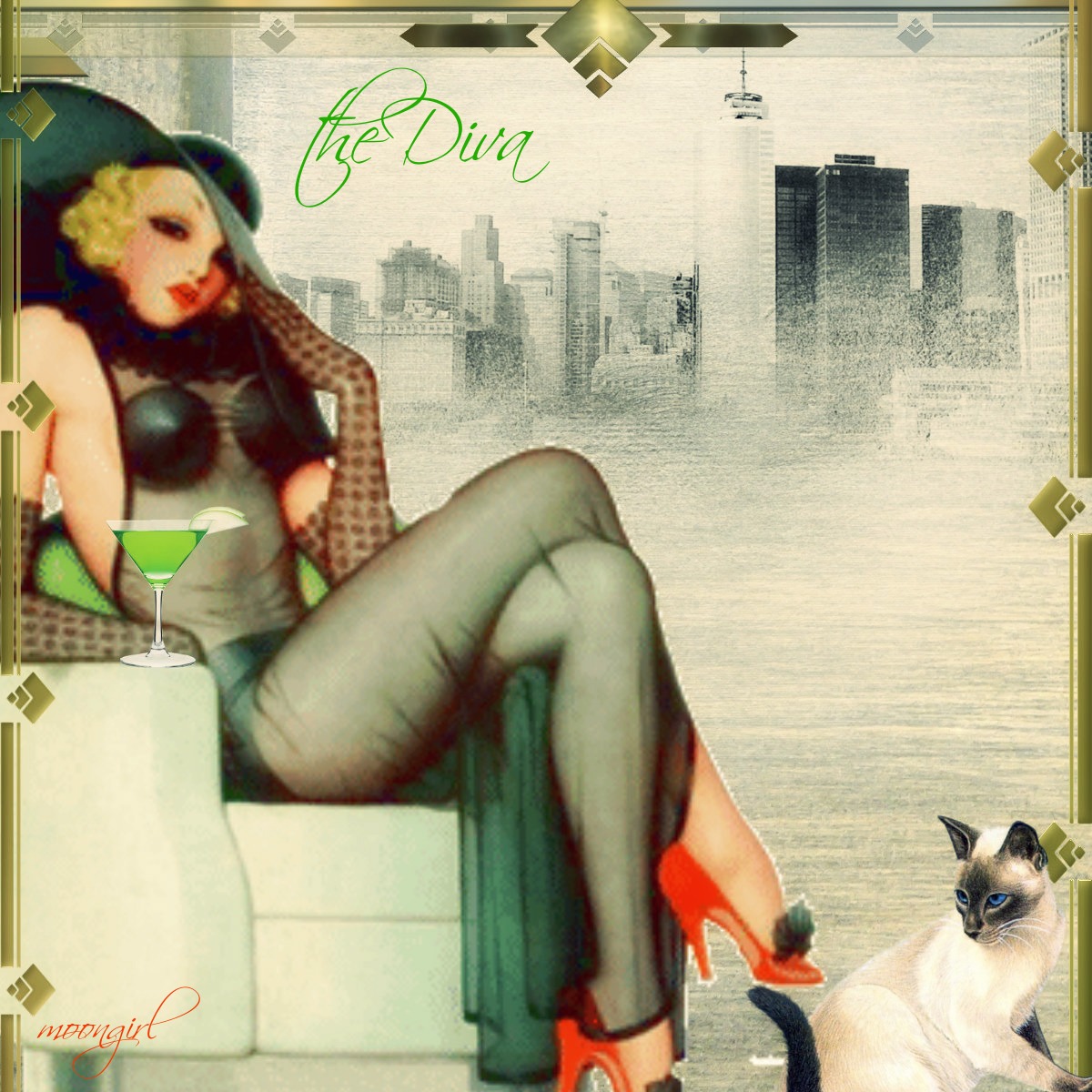 Anna Aspnes Design and JM art deco kit.Lady and cat tubes, the net.