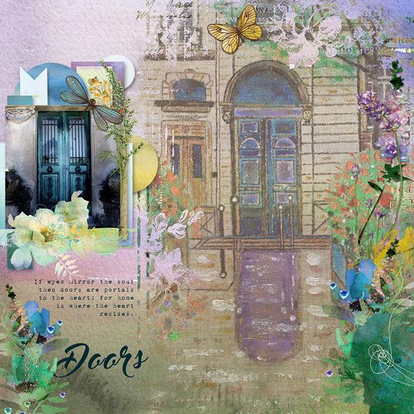 Scent of a Garden and Scent of a Garden Playing with Brushes et designs Creative Blending Templates vol. 47 PrelestnayaP Designs Fonts: title – Master of Break, journaling - 1942 Report Large image by Daniel Puel from Pixabay, small photo by Public Domain Pictures from Pixabay Journaling reads: If eyes mirror the soul, then doors are portals to the heart; for home is where the heart resides.