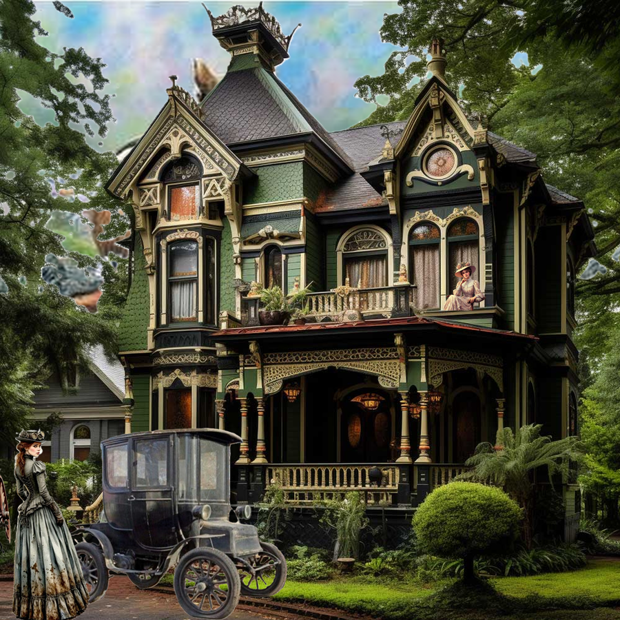 Created with Scrapbook Max 2.0. The electric car, the 2 ladies, background, and Victorian home, were found on Pinterest.