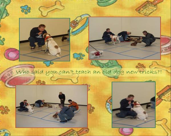 Brenden and Millie at Dog Training. Learning to sit with distractions by playing Tic-Tac-toe.