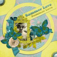 I used 'Blooming Backyard Add On kit'. In CAP2 cropped the materials to shape and added shadows. Clustered elements and image of lady is from The Sum Of All Crafts x