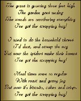 On someone's profile was the comment that since they had started scrapping, the household chores were not getting done. I thought I would write a litte 'Ode To Scrappers'