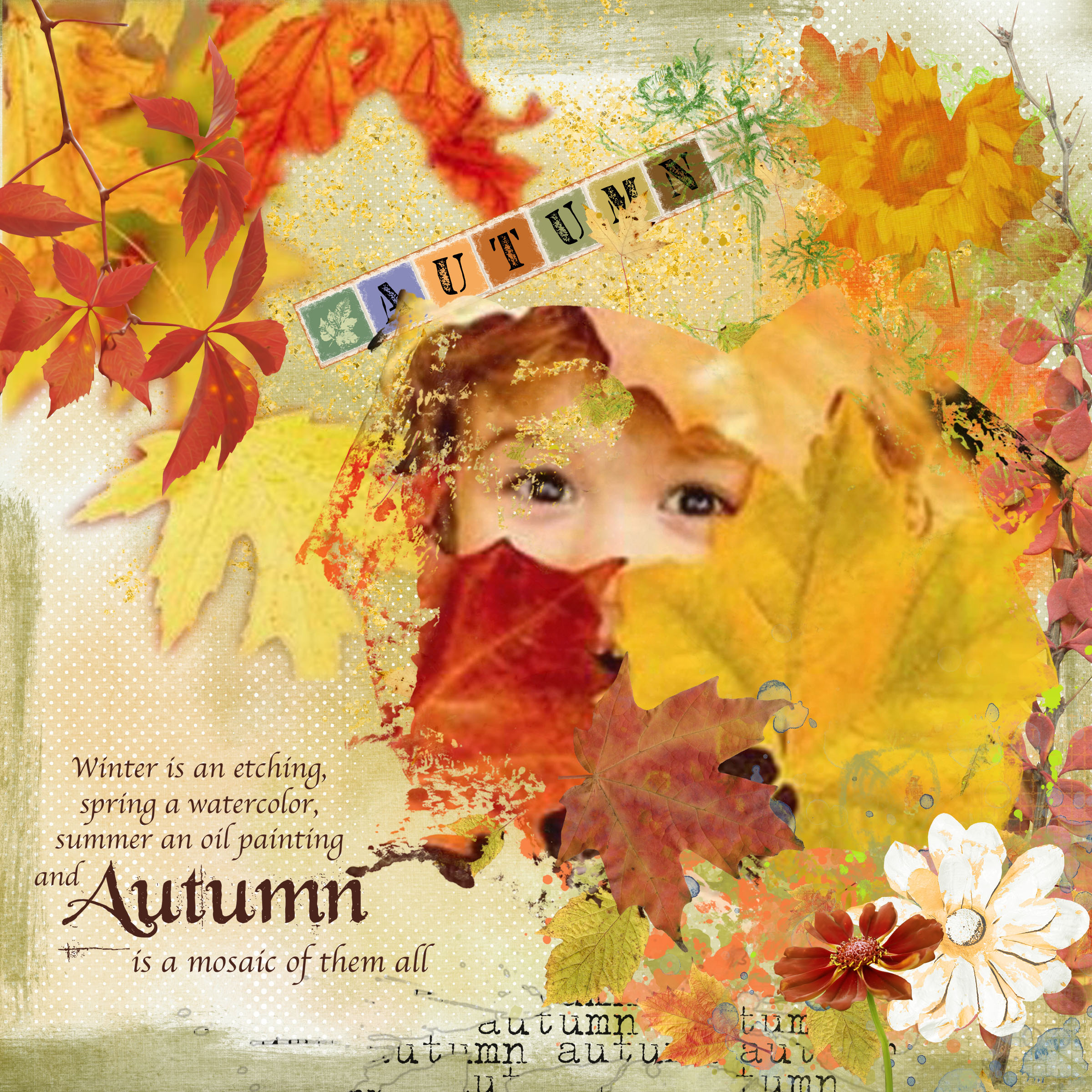 What a lovely quote Joce and perfect for your beautiful page. Love the wee face looking out from under the Autumn leaves. Thank you so much for creating this beautiful page for the challenge.
