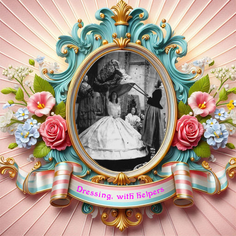Dressing for an Evening outing or Ball in the Victorian Era was difficult at best. I didn't realize it took so many helpers, in this Victorian photo there is at least 4 helpers!