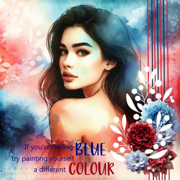 It was fun working with red, white and blue. Not colours I would normally use. For Val's challenge. Thank you Val