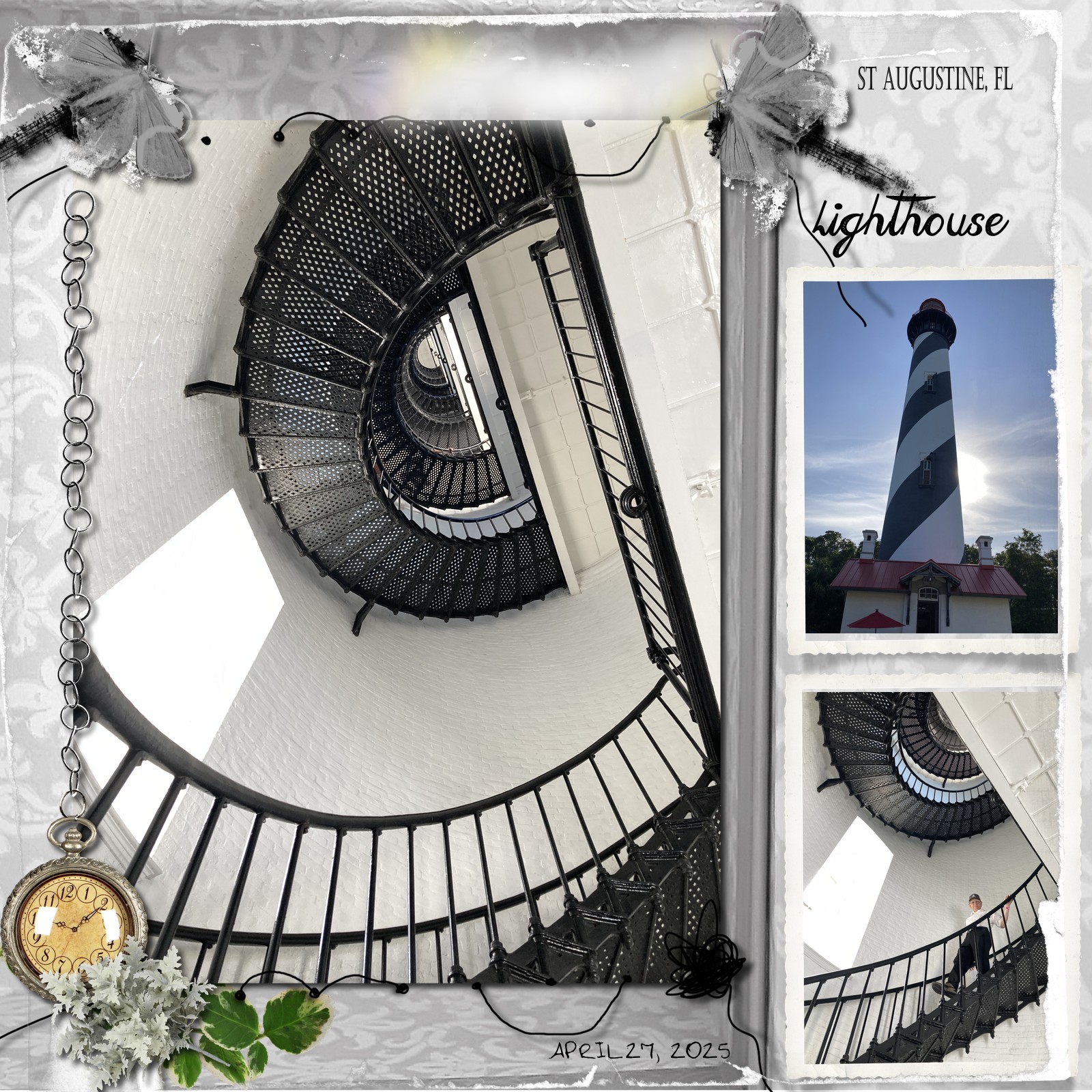 During our April mini-vacation, we went through St. Augustine, FL. Hubby did climb the 219 steps to the top of the light...I stayed below and took photos. Of all the lighthouses we have been to in the last couple of years, these stairs are my favorite. (For the Three Times August challenge)