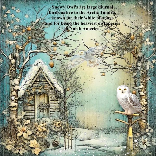 Snowy Owl's are large diurnal birds native to the Arctic tundra, known for their white plumage and for being the heaviest Owl species in North America. I have wrote on the page but you can't really see it properly. Effects done in PDN kit is A Cottage In The Woods by Mel's designz.