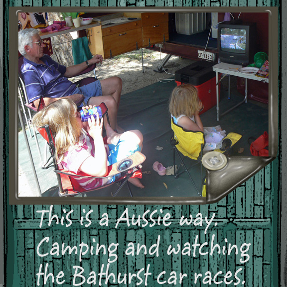 We take our grand daughter's camping, and of couse you have to watch the car race.