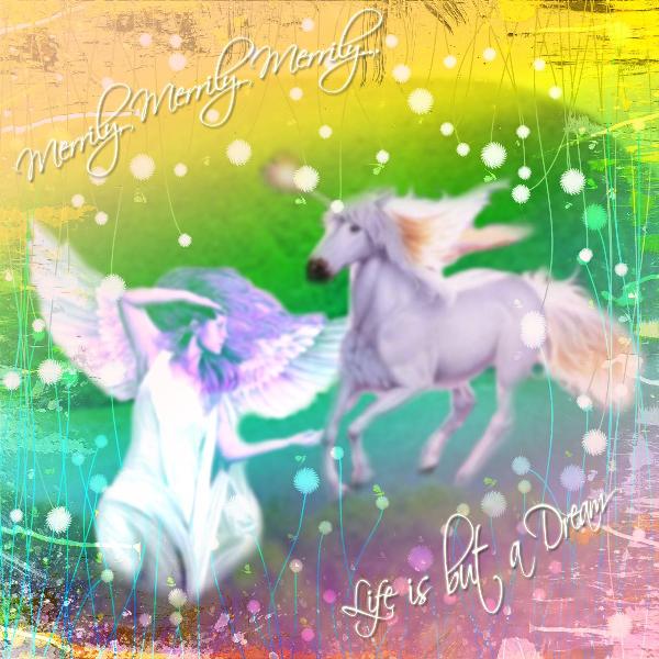 -Overlay designed by Adeline - Adeyeo's Freebie 6. - Three wallpapers (background, angel and unicorn) were distorted, colored and blended. - Text from a Nursery Rhyme.