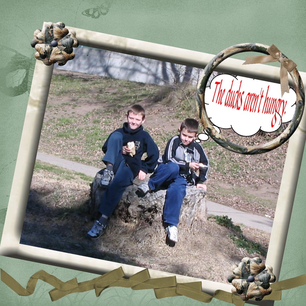 Justin & Caleb thought they would feed the wild ducks at the river in town, but the ducks weren't interested,thankyou for looking & for any comments or votes.