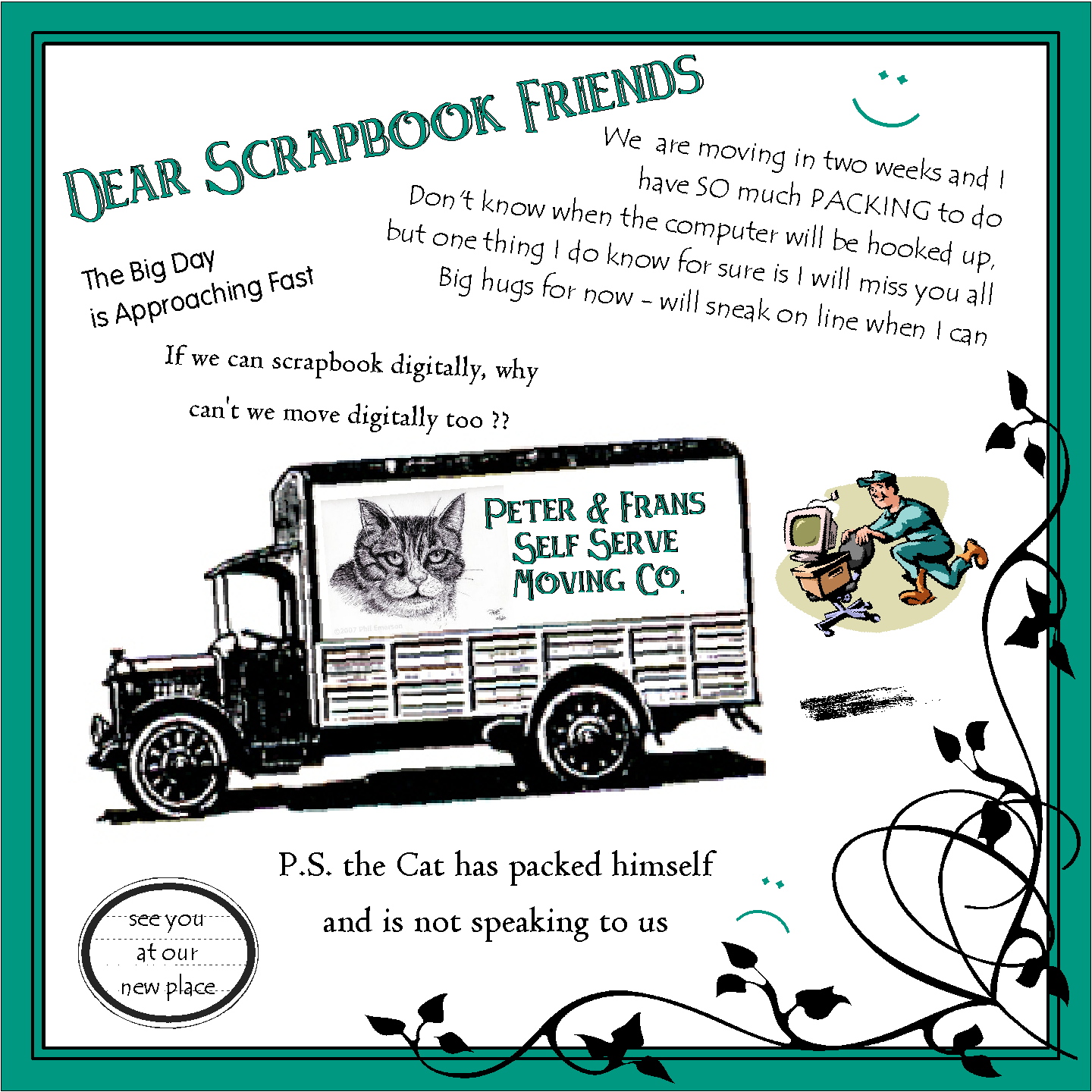 Oh my gosh...this page is ADORABLE! I love the kitty moving van...and my dear daughter just moved...her kitties holed up for about a week! LOL