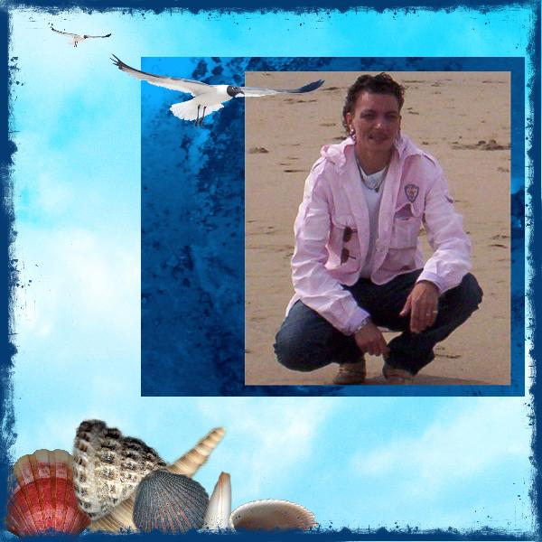 this picture of my partner is made on te beach last summer on our vacation. the sun, sea,the beach and the wind in your hair who needs more!!