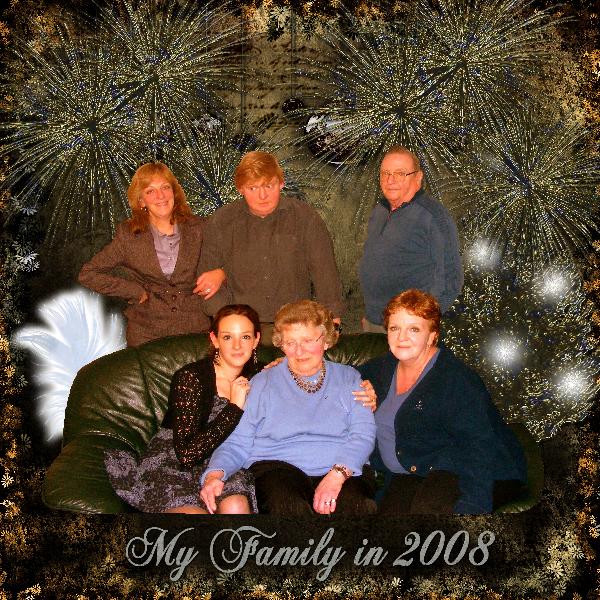 We spent the end of the year in Belgium ;sitting from the left to right : Johannie, my daughter, Mom, me ; standing up ; from left to right, my sister,my brother and my Dad.My husband took the picture That's my little world.