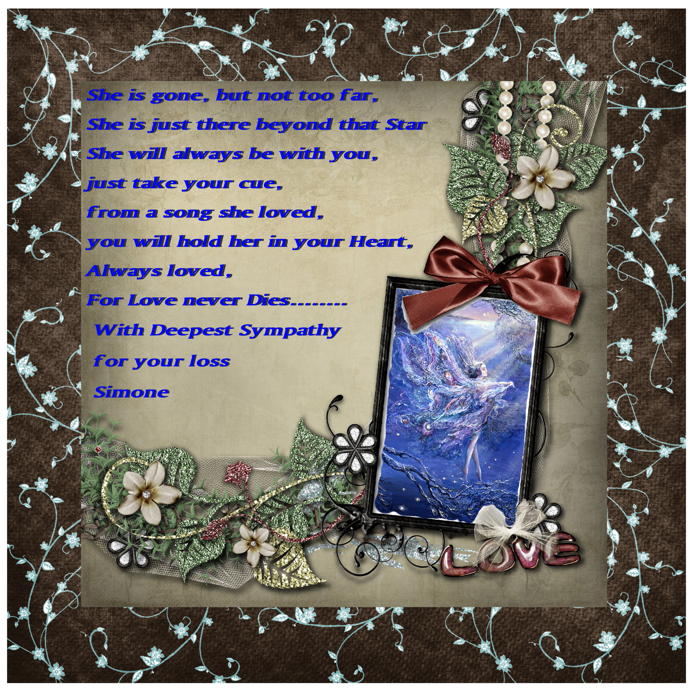 For Stacy in her time of loss, my prayers are with you to help you thru this troubled time. Remember she will always be looking after you. Blessings Simone